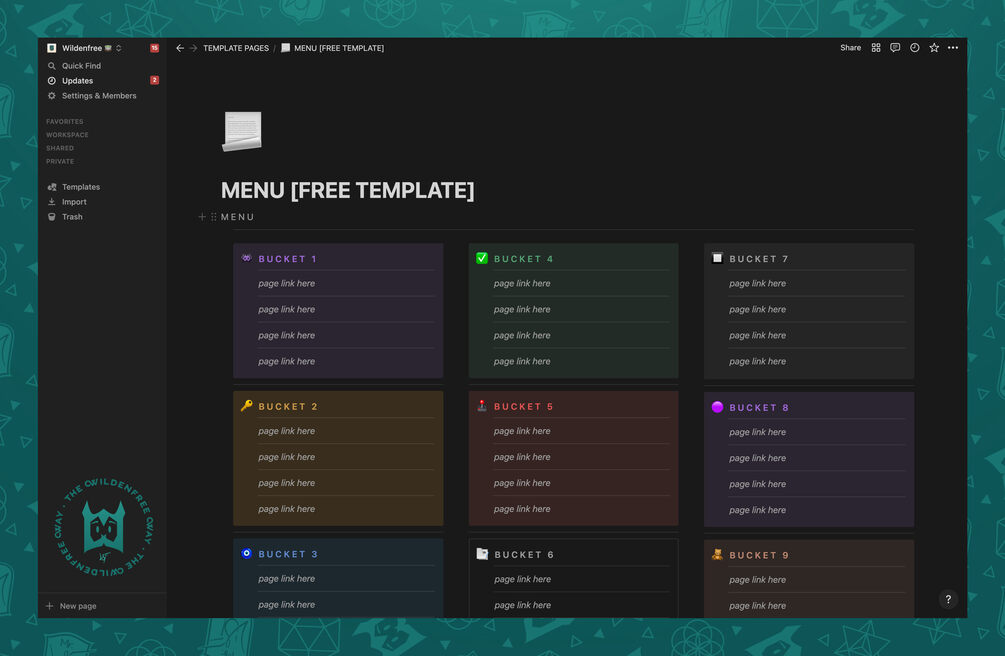 Here's a light & easy MENU page, configured with 9 Callout Blocks to serve as group categories for relevant pages in your workspace!