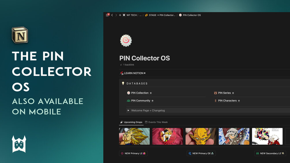 A Template for serious Pin Collectors to Organize collections! Keep track of pre-orders, upcoming drops, pin trades & proofs. Efficiently log details about your pins, everything from the grade, to the edition type, count, size, effects, creator, artist, series & then some.